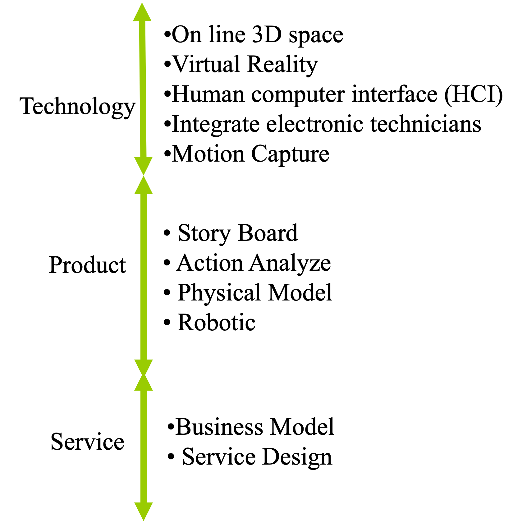 Following those three experiments, I summarize three phases technology, product, and service parts. (See image 05) I already tried from the technology and product sides. The future step is using the service design of puppetry groups and finding out the business model which can share profit with all stakeholders. My final goal is to attract young people to enjoy the glove puppet performing culture. Since 2020 some puppetry groups have received influence and started using digital puppets and virtual stage ideas in their shows. Before 2005 I was the first and only one to present the digital puppet idea in Asia. Now The snowball effect is starting. I hope the glove puppet’s traditional skills can live on for a long time.